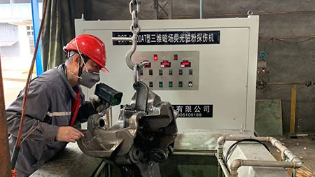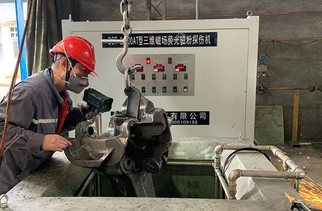 熒光磁粉探傷機探傷深度不夠的原因是什么因為熒光磁粉探傷機的磁感應(yīng)線只能在內(nèi)部產(chǎn)生扭曲的缺陷,它不能從工件表面逃逸,形成不漏磁場,也不會吸引磁粉,無法檢